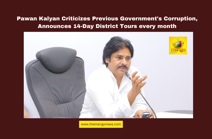 Mangalagiri: Deputy Chief Minister Pawan Kalyan slammed the previous government for corrupt practices that he claims had spoiled the state’s governance. He emphasized that the current NDA coalition government is working hard to streamline the system and bring much-needed reforms. Pawan Kalyan announced that he will dedicate 14 days each month for district tours to directly engage with the public and address their concerns.