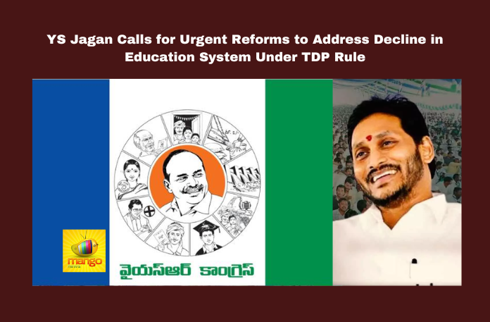 Tadepalli: YSR Congress Party (YSRCP) Chief and former Chief Minister YS Jagan Mohan Reddy has voiced grave concerns over the deteriorating state of Andhra Pradesh’s education system under the leadership of Chief Minister Chandrababu Naidu. In a strong statement made on social media platform X, YS Jagan urged Naidu to prioritize student welfare and address the systemic issues plaguing the education sector, rather than engaging in political maneuvering.