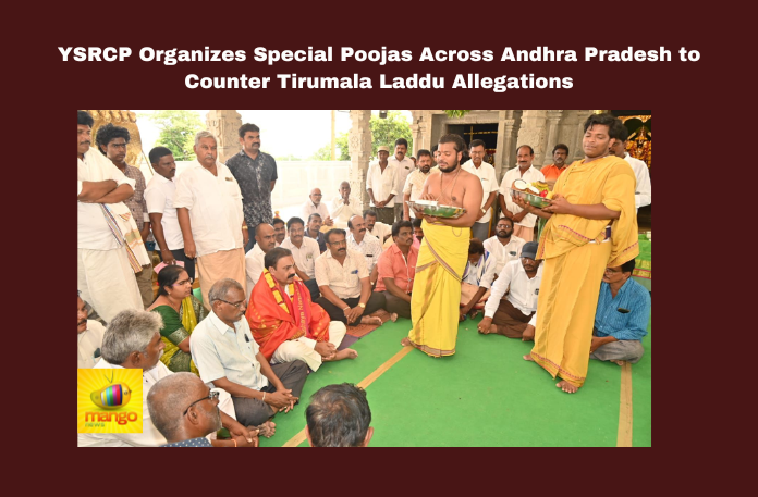 Andhra Pradesh: In response to Chandrababu Naidu’s allegations about the adulteration of the Tirumala laddu prasadam, YSR Congress Party (YSRCP) leaders held special poojas across Andhra Pradesh, as instructed by party President and former Chief Minister YS Jagan Mohan Reddy. The prayers were aimed at ensuring that any negative consequences of Naidu’s claims do not affect the people of the state and are limited to him alone.