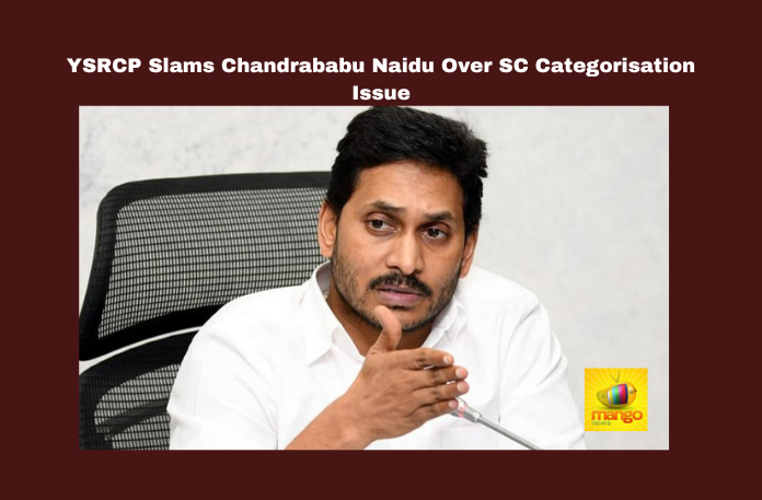 YSRCP Slams Chandrababu Naidu Over SC Categorisation Issue, SC Categorisation Issue, YSRCP Slams Chandrababu Naidu, YSRCP, SC Categorisation, AP Politics, YS Schemes, Inclusivity, TDP, Krishna Madiga, SC Welfare, YSRCP Slams, CM Chandrababu, Andhra Pradesh, AP Live Updates, Live Updates, Breaking News, Headlines, Live News, Mango News