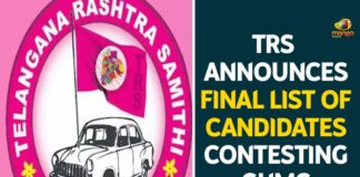 TRS Announces Final List Of Candidates Contesting GHMC Elections