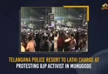 Telangana Police Resort To Lathi Charge At Protesting BJP Activist In Munugode