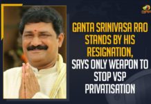 Ganta Srinivas Rao Stands By His Resignation, Says Only Weapon To Stop VSP Privatisation