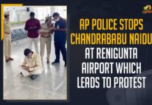 AP Police Stops Chandrababu Naidu At Renigunta Airport Which Leads To Protest