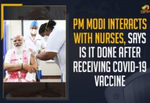 After taking a jab of the Novel Coronavirus or COVID-19 vaccine, Prime Minister Narendra Modi interacted with the nurses who administered him the India...