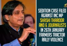 Sedition Case Filed Against INC MP Shashi Tharoor And 6 Journalists In 26th January...