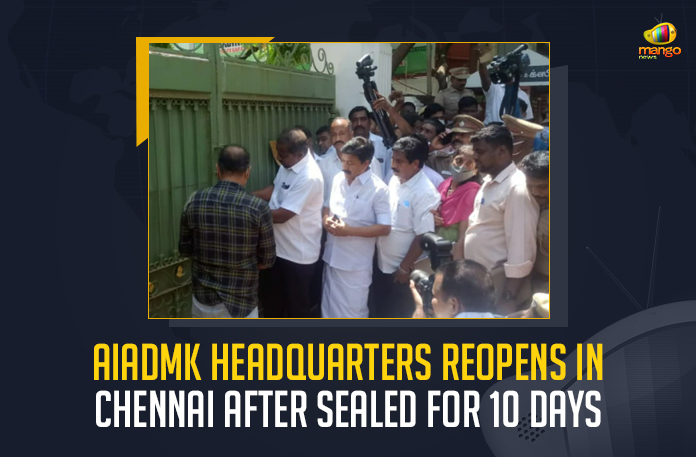 AIADMK Headquarters Reopens In Chennai After Sealed For 10 Days, AIADMK Headquarters Sealed For 10 Days, AIADMK Headquarters Reopens In Chennai, AIADMK Headquarters Reopens, headquarters of the AIADMK at the MGR Maaligai Chennai, All India Anna Dravida Munnetra Kazhagam, AIADMK headquarters at the MGR Maaligai Chennai, AIADMK office was sealed on the 11th of July, clashes between the two leaders broke out amid the single leadership of the AIADMK party, Revenue Authorities of Chennai announced to seal the AIADMK office, AIADMK office, AIADMK Headquarters Reopens News, AIADMK Headquarters Reopens Latest News, AIADMK Headquarters Reopens Latest Updates, AIADMK Headquarters Reopens Live Updates, Mango News,