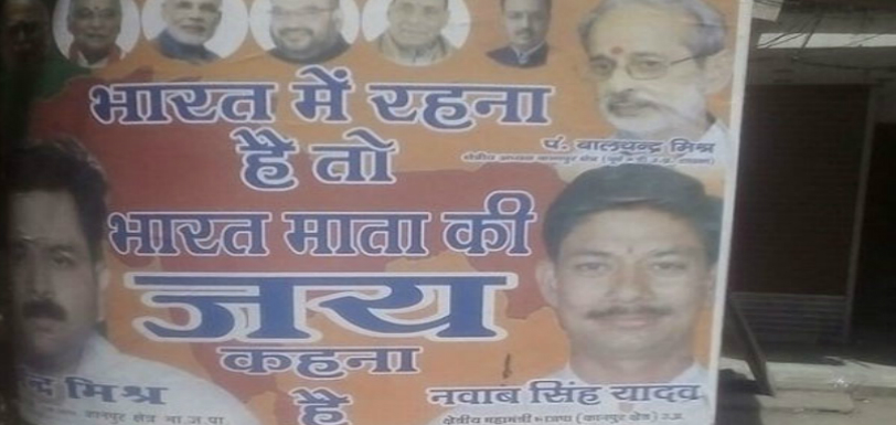 Kanpur: The Bharat Mata Ji Kai is still in a row as the ruling Bharatiya Janata Party published controversial posters. The posters belonging to BJP read “Bharat mein rehna hai to Bharat Mata ji jai kehna hai‘ (if you have to live in India, you have to say Bharat Mata Ki Jai).