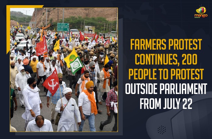 The Bharatiya Kisan Union leader Rakesh Tikait on Saturday informed that from July 22 onwards, 200 people will hold protests near Parliament, in view of the ongoing farmers’ protests.
