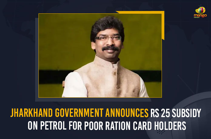 Mr. Hemant Soren said that the Jharkhand Government would provide Rs. 25 subsidy to poor ration card holders for petrol usage for two wheelers. The decision to allow the subsidy was in the view of rising petrol prices, which have hit poor and middle class people in the State.