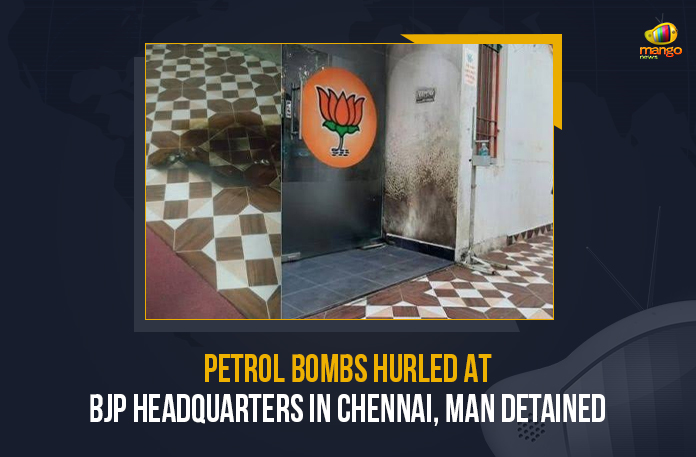 Petrol Bombs Hurled At BJP Headquarters In Chennai Man Detained, Petrol Bombs Hurled At BJP Headquarters In Chennai, Petrol Bombs, BJP Headquarters In Chennai, BJP Headquarters, Petrol Bombs Hurled At BJP Headquarters, Bharatiya Janata Party office, Bharatiya Janata Party Headquarters, Petrol Bombs Hurled At Bharatiya Janata Party Headquarters, petrol bombs at the entrance of the Bharatiya Janata Party office, petrol bomb, Petrol Bombs In Chennai, Bharatiya Janata Party, Mango News,