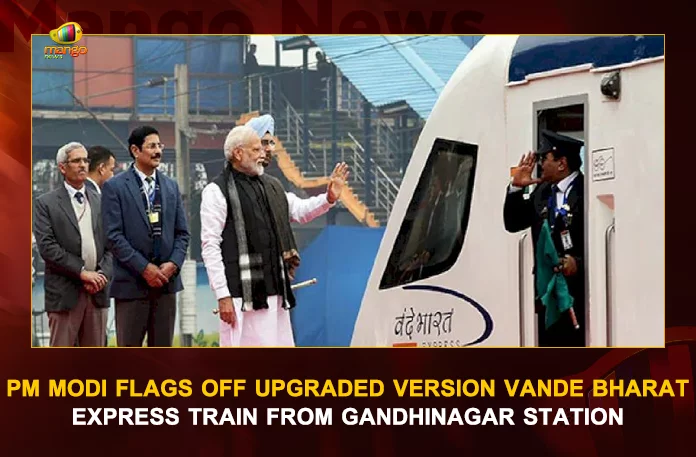 Prime Minister of India Mr. Narendra Modi flagged off the new and upgraded version of Vande Bharat Express, en route between Gandhinagar and Mumbai.