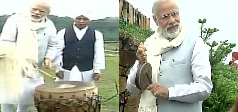 Meghalaya: With a heart-warming gesture, Prime Minister Narendra Modi tried to play drums along with the folk dancers at a cultural event organised to welcome him at Mawphlang village which is 25 km away from Shillong in East Khasi hills district of Meghalaya on Saturday morning. On his visit to Meghalaya, PM Modi interacted with the local people, flagged off new passenger trains for the northeast and also laid the foundation stone for a football stadium ‘Ampati’ in Friday.