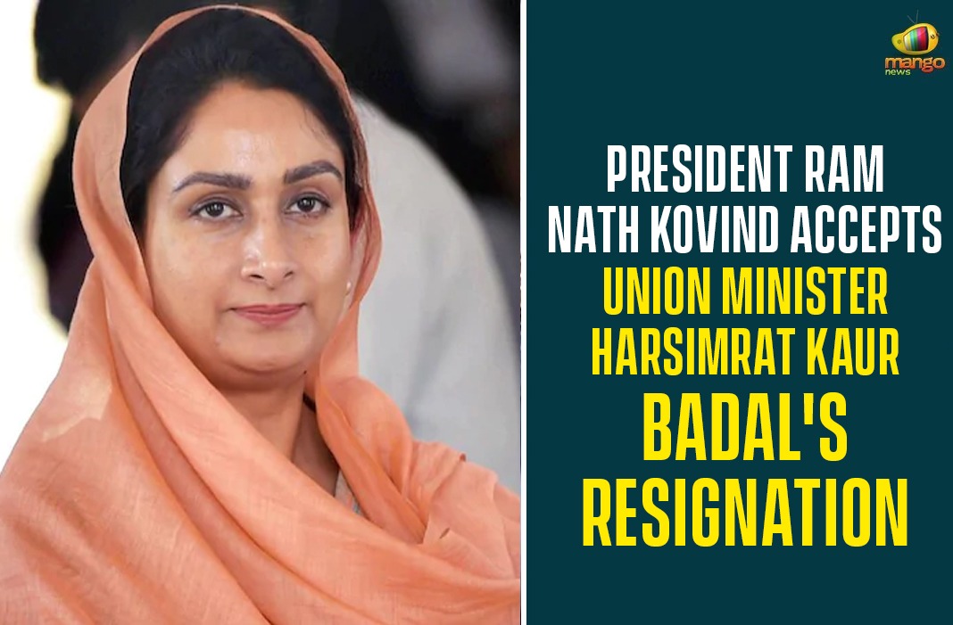 The President of India Ram Nath Kovind, on the night of the 17th of September, accepted the resignation of Harsimrat Kaur.