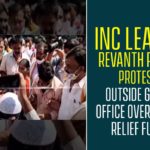 INC Leader Revanth Reddy Protests Outside GHMC Office Over Flood Relief Fund