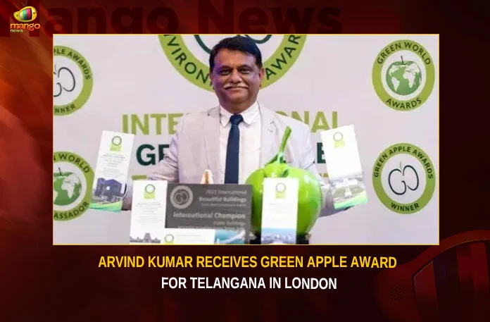 On behalf of the Government of Telangana, Arvind Kumar, Special Chief Secretary of Municipal Administration and Urban Development has received the prestigious “Green Apple Awards” The award ceremony took place at the distinguished St. Paul’s Cathedral, London on June 16. Telangana won five ‘Green Apple Awards’ for ‘International Beautiful Buildings’ from London-based independent non-profit ‘The Green Organization’.