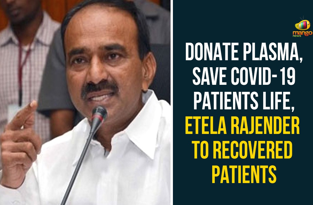 Etela Rajender, the Health Minister of Telangana, urged the recovered patients from the Novel Coronavirus to donate plasma and save other lives.