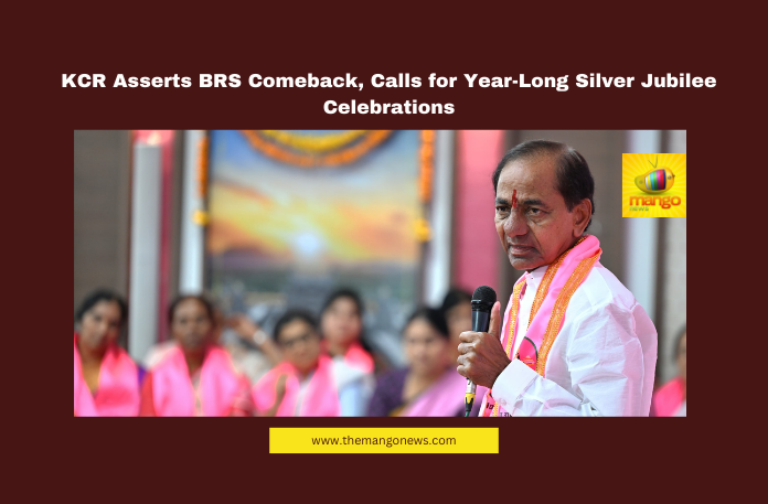 KCR announced a year-long Silver Jubilee campaign, beginning with BRS Rajatotsava programs on April 10 in Hyderabad. He also revealed plans for a massive public meeting on April 27, followed by membership drives and internal elections. The election for the party president is set for October-November.