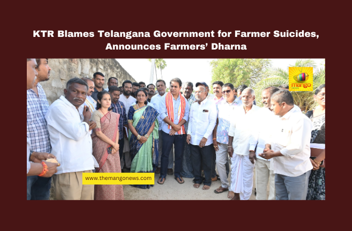 KTR Blames Telangana Government for Farmer Suicides, Announces Farmers’ Dharna, Telangana farmer suicides, KTR speech on farmers, Bharasa Rythu Study Committee, Telangana BJP farmers' protest, Telangana farmer support schemes, loan waiver issues Telangana, Adilabad farmer study, Nalgonda farmers’ dharna, KTR criticizes Congress, Telangana agricultural policies, Mango News