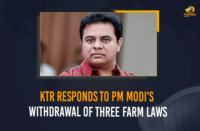 Mr. K.T. Rama Rao, the Working President of the Telangana Rashtra Samithi (TRS,) responded to Prime Minister Narendra Modi’s announcement to repeal the three farm laws.