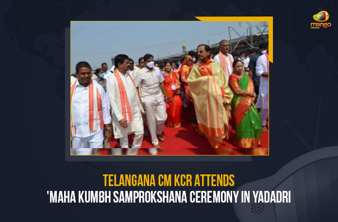 Telangana Chief Minister Mr. K Chandrashekar Rao along with his family members attended the ‘Maha Kumbha Samprokshana’ ceremony held at Sri Lakshmi Narasimha Swamy Temple in Yadadri Bhuvanagiri district, on the 28th of March, Monday.