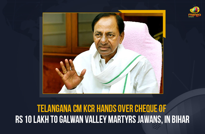 The Telangana Chief Minister Mr. K. Chandrashekhar Rao and his Jharkhand counterpart Hemant Soren handed over cheques of Rs 10 lakh each to family members of two jawans martyred in Galwan Valley clashes at the Chinese border.