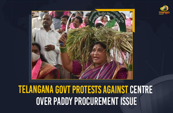 The Telangana Rashtra Samiti (TRS) leaders and workers called for a protest on the 4th of April, Monday. The leaders staged demonstrations and held dharnas along with farmers in all the mandal headquarters, protesting against the Central Government over paddy procurement issue.