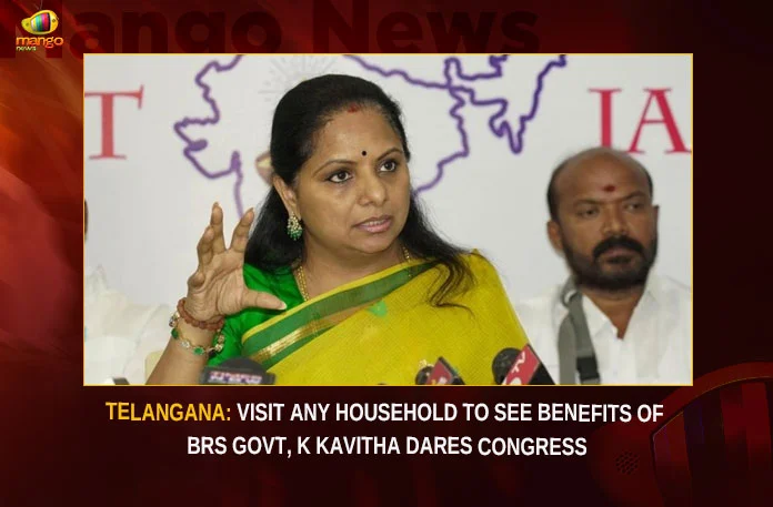 Telangana Visit Any Household To See Benefits Of BRS Govt K Kavitha Dares Congress,Visit Any Household To See Benefits Of BRS,Benefits Of BRS Govt,K Kavitha Dares Congress,BRS Govt K Kavitha Dares Congress,Mango News,MLC Kavitha dares Opposition parties,Telangana Latest News,Telangana Latest Updates,K Kavitha Latest News,K Kavitha Latest Updates,Kalavakuntla Kavitha News,Telangana News Today,Hyderabad News,Telangana News,BRS Govt K Kavitha Latest News,BRS Govt K Kavitha Latest Updates