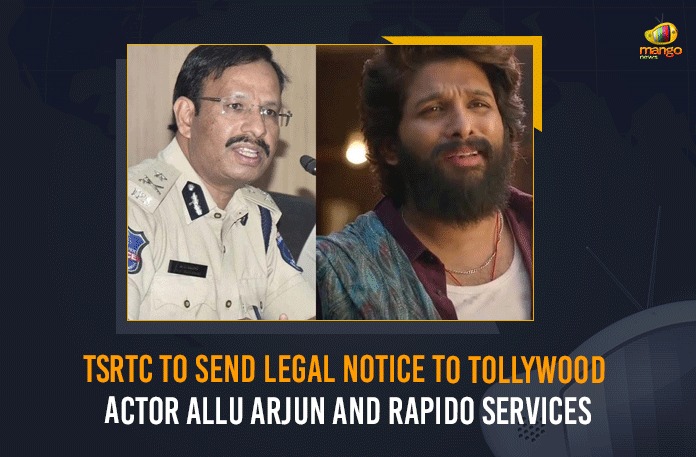 The Telangana State Road Transport Corporation (TSRTC) is going to send a legal notice to Tollywood actor Allu Arjun and Rapido services.