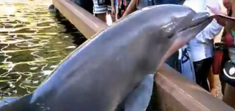 A video was also shot by another visitor. In the video clip, it is seen that dolphin reaching over the side of the viewing tank at SeaWorld Orlando, where visitors can touch them. After the incident, the woman retrieved the device and then walked away.