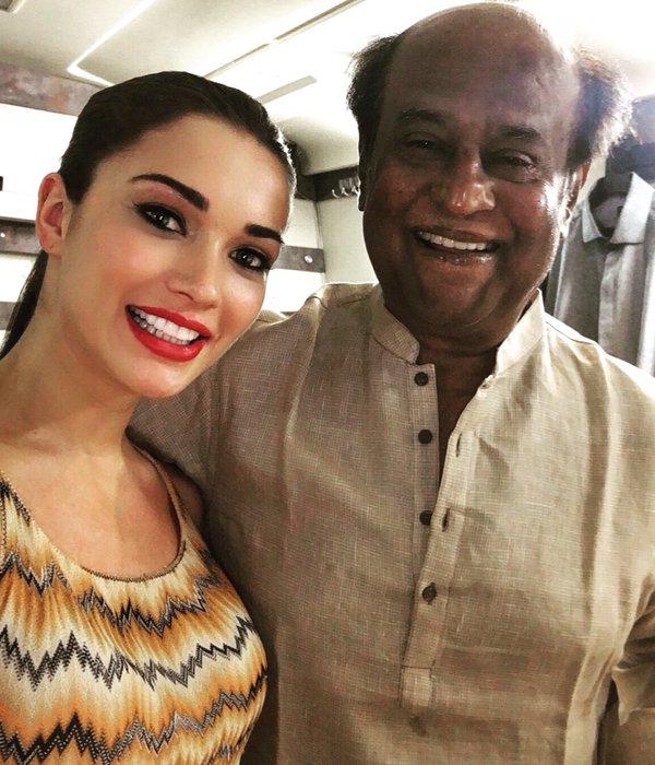 Hyderabad: Actress Amy Jackson shared a selfie with super star Rajinikanth on her official Twitter handle. She captioned it, “I don’t think I’ve ever looked so happy on a photograph ? Rajiniji, I feel super honoured to be acting alongside you.”