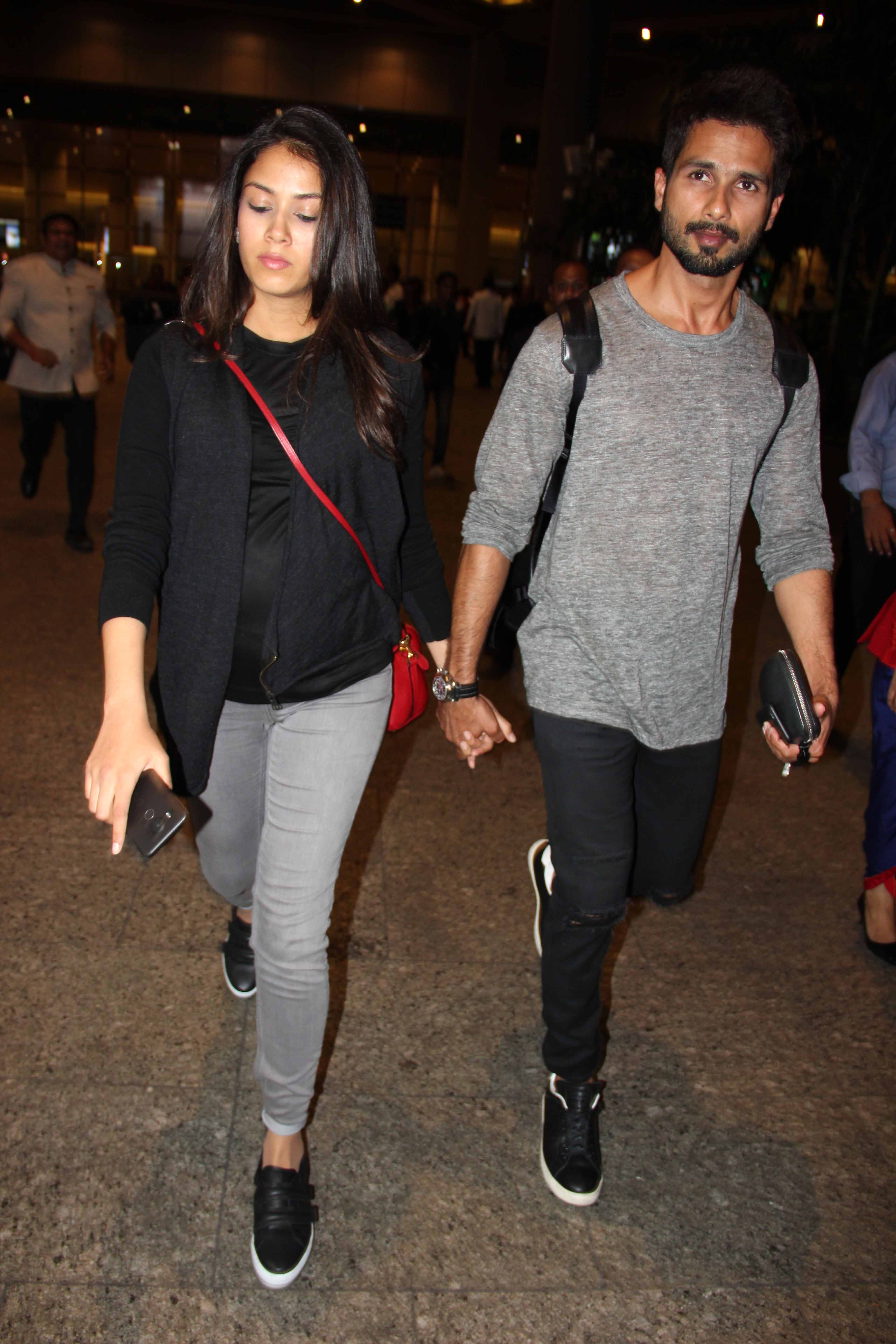 Mumbai: Bollywood star couple Shahid Kapoor and Mira Rajput landed in Mumbai after their babymoon. The actor took a short break and took his darling wife Mira to Maldives. The love birds spent a whale of time together at their vacation and returned home. They were photographed hand-in-hand at the Mumbai airport. Shahid and Mira tied the knot last year in a private ceremony and are expecting their first child this year.
