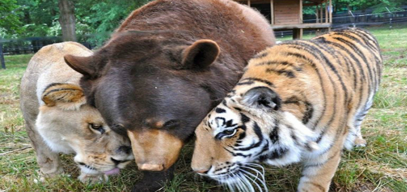 The world has come across various kind of friendships among animals, but this is first time that a lion, Bengal tiger and American black bear have been living together in harmony and share an unbreakable bond with each other.